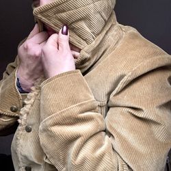 Vintage 1970s faux shearling lined tan corduroy chore coat Unisex size 40, Medium $75Huntingtn Sta, NY