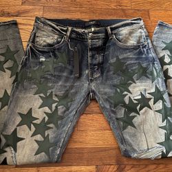 Mike Amiri Chemist Green Star Leather Denim $350Huntingtn Sta, NY