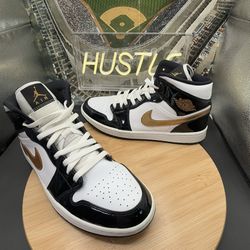 Nike Air Jordan 1 Mid Black White Gold Patent Mens Sz 11$95Selden, NY