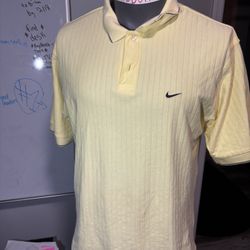 Nike Golf VINTAGE 00s Men’s L Yellow/Cream Ribbed Cotton Striped Polo RARE$35Islip Terrace, NY