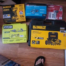 Dewalt 2 Drills, 2 Screw Guns, Sawsall, Flashlight, 2 Batteries & 3 Chargers, $115Huntingtn Sta, NY
