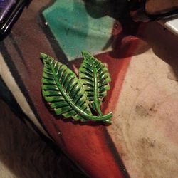 Vintage 1940s Two Leaf Green Enamel Signed Broach$45Waterbury, CT