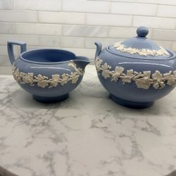 Vintage Wedgwood Blue Embossed Queensware Creamer and Sugar$53Cheshire, CT