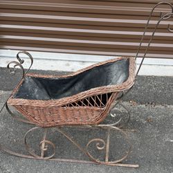 Antique Wrought Iron Doll Sled with Wicker Basket. 34L x 13W x 36H$40Oxford, CT