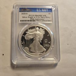 2025-s PCGS PR69DCAM Silver Eagle w/U.S Navy Privy 250th Anniversary Super Rare!$325Riverton, CT
