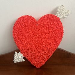 Vintage Valentine’s Day Glitter Plaque Melted Popcorn Large Heart & Arrow about 16” x 16”$25New Milford, CT