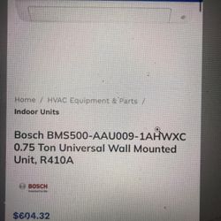 Bosch BMS500-AAU009-1AHWXC 0.75 Ton Universal Wall Mounted Unit, R410A$300East Hartford, CT