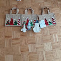Christmas Stuff- 3 Decorated Gift Bags, 1 Snowman Basket And 2 Gnome Ornaments.$5Springfield, MA