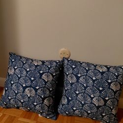 2 Throw Pillows, Blue And White Scallop Design $6Springfield, MA