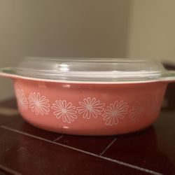 Vintage 1950s Pyrex Pink Daisy Oval Casserole w/ Lid 2.5 Quarts$75Storrs Manfld, CT