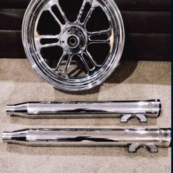 Harley Davidson Chrome Pipes & โ18 Rear Rim$200Norwich, CT
