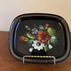 Vintage Tole Tray Floral Flowers 8” x just under 7” made in the USA $20Woodbury, CT
