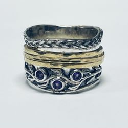 Vintage Sterling Silver Israel PAZ PZ 3 Amethyst Gold Spinner Band$75Watertown, CT