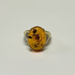 Vintage 10K Yellow Gold Oval Cut Amber Diamond Accent Ring Hallmarked$250Watertown, CT