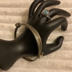 Vintage Silver Adjustable Bracelet And Handmade Wired Ring With Aqua Stone$12New Haven, CT
