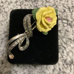 Vintage Silver Tone Rose Brooch With Yellow Pedals And Rhinestones,by(Avon )$15New Haven, CT