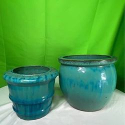 Gorgeous Borsa Inspired Blue and Green Glazed Earthenware Ceramic Planter Pots$100East Lyme, CT