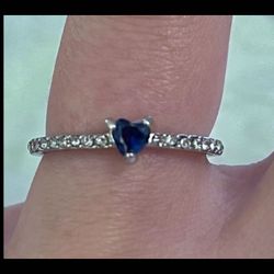 Absolutely Gorgeous Deep Blue Heart Shaped Sapphire Surrounded By Brilliant White Sapphires Set In 925 Sterling Silver Bridal Christmas Ring $135Colchester, CT
