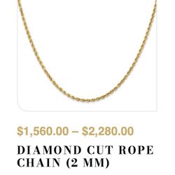 Gold Chain $1,500 (Diamond Cut Rope Chain, 22’, 2mm, 14k)$1,500Enfield, CT