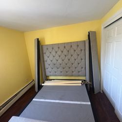 Gray Upholstered Wingback Bed Queen Size + 2 Black Nightstand Queen Mattress& Adjustable Bedframe$225Norwalk, CT