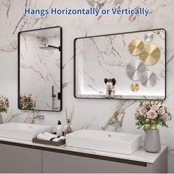Black Framed Bathroom Mirror, 24X36 Inch Rounded Rectangle Black Bathroom Mirror, Matte Black Bathroom Vanity Mirror for Wall, Anti-Rust, Tempered Gla$55Stratford, CT