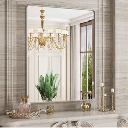 Brushed Silver Bathroom Mirror, 28 x 36 Inch Modern Wall Mounted Vanity Mirror for Bathroom, Rectangular Metal Framed Farmhouse Mirror, Rounded Corner$65Stratford, CT