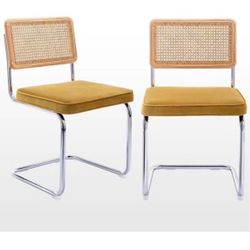 Mid Century Modern Dining Chairs Set of 2, Velvet Accent Chairs with Natural Cane Back & Stainless C$105Stratford, CT