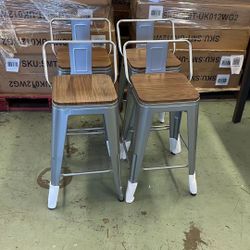 Home 24" Low Back Metal Counter Stool Height Bar Stools with Wooden Seat [Set of 4] Barstools, Silver$99Bridgeport, CT