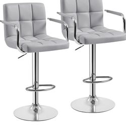 Modern Bar Stools Set of 2 Swivel Kitchen Stool Height Adjustable Square Counter Stool with Back&Armrest PU Leather Stool, Light Grey$90Stratford, CT