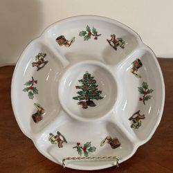 Vintage Christmas Holiday Appetizer Divided Dish Tray about 10.5” diameter made in Japan $25Woodbury, CT