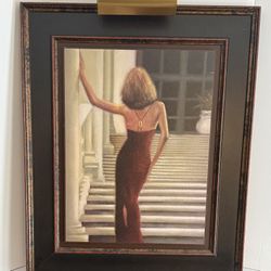 Anticipation by Vincent George Portrait Painting-The Bombay Company 27”x 32” With Light-Gorgeous!!$50Middlebury, CT