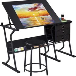 Drafting Table for Adults/Artists, Drawing Desk, Tabletop Adjustable Art/Craft Desk with Stool and 3 Slide Drawers, Sketching Painting Artwork Station$90Stratford, CT