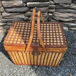 Leather And Wicker Basket Picnic Style And Faribo Wool 50x60 Blanket$50New Haven, CT