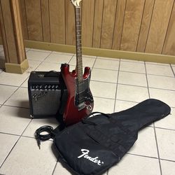 red and black guitar with portable amp$350Stratford, CT