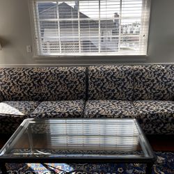 Custom 2-Piece Designer Sofa - Blue & Yellow Damask - Great Condition!$375Greenwich, CT