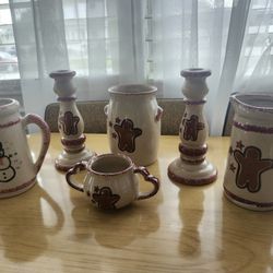 Farmhouse Christmas Pottery Set of SIX Gingerbread & Snowman Design 🍪⛄$40Lindenhurst, NY