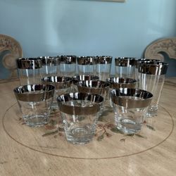 Set of 15 Vintage Silver Rim Dorothy Thorpe Glasses Mid Century Cocktail BarWare$50Williston Park, NY