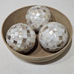 Set Of Three Capiz Shell Mosaic Tile Decorative Balls Orbs Spheres$50New Haven, CT