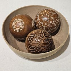 Set Of Three Hand Carved Decorative Wood Balls Orbs Spheres$50New Haven, CT