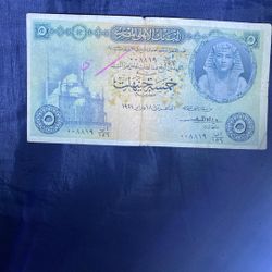 Egypt 5 Pounds Banknote – 18 February 1958 – Issued by National Bank of Egypt – United Arab Republic era – Large size note – Condition: Very Good with$60Medford, NY