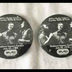 2 Crosby Stills Nash 1978 Concert Pin-back Buttons Madison Square Garden WPLJ Radio Music Memorabilia $5Garden City P, NY