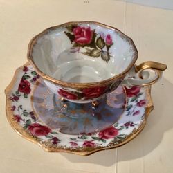 1950s Iridescent Hand-Painted Roses Cup + Saucer Napco Japan Gold Accents #1DD240$25Garden City P, NY