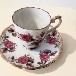 Trimont Ware 1950s Cup + Scalloped Saucer Hand-Painted Pink Roses Gold Accents$25Garden City P, NY
