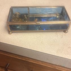 Old Jewelry Box Glass Has A Blue Tint To It. Music Box Works Fine.$40Medford, NY