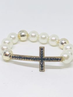 Bracelet with cross in bronze with black rhinestones and faux pearls$4Ossining, NY