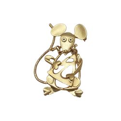 Mouse Figural Brooch Pin, Mate Gold Tone Metal, Cut Out Technique, Novelty Jewelry Accessory, Vintage Costume Jewelry $24Ossining, NY