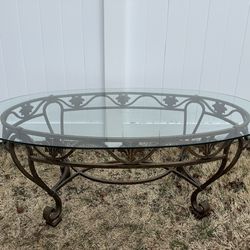 Thomasville wrought iron oval coffee table with glass top$80South Farmingdale, NY