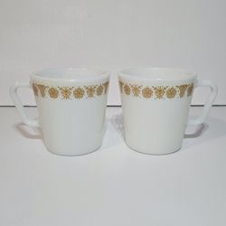 Pyrex Butterfly Gold Coffee Mugs #1410 Set of 2 Vintage 3.75" Milk Glass Cups$10Bay Shore, NY