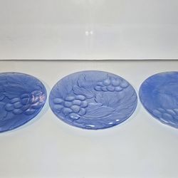 KIG Frosted Embossed Grape Glass Plates Set of 3 Vintage Satin Blue Glassware$10Bay Shore, NY