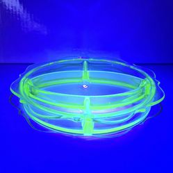 Uranium Divided Glass Candy Dish 10" Vintage Depression Green Glowing Glassware$30Bay Shore, NY